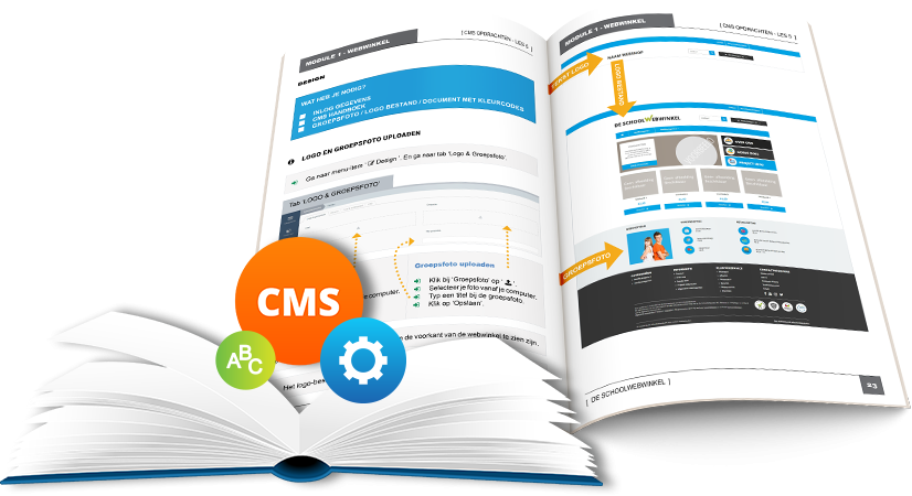 • De opdrachten om de webshop in te richten en te beheren staan duidelijk en overzichtelijk met afbeeldingen weergegeven in de CMS-handleiding. Deze staat online in de ELO en is ook te koop in boekvorm.